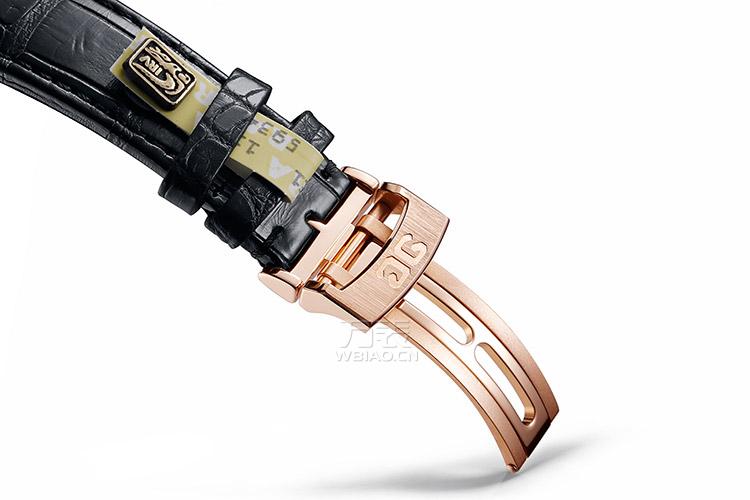 蓝宝石水晶玻璃表镜,不同以往的螺旋式表冠,透底表底,将自动上链机械机芯一览无遗,路易斯安那黑色鳄鱼皮表带,同样18k玫瑰金的折叠表扣。