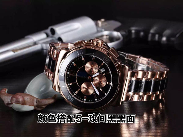 立即订购:经典男士腕表 男装店手表货源 6针有历 进口石英机芯 复刻手表批发 精钢间陶瓷表带