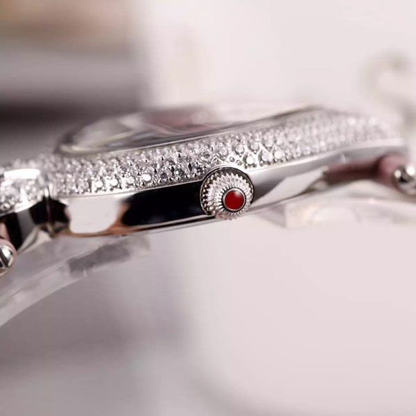 立即订购:女士腕表 手表微商代理 休闲镶钻外圈 贝母表面 不锈钢绢丝表带款石英表