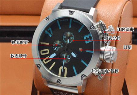 霸气50mm大表盘 手表代理微信号 进口石英机芯 日历休闲不锈钢 男士多功能手表